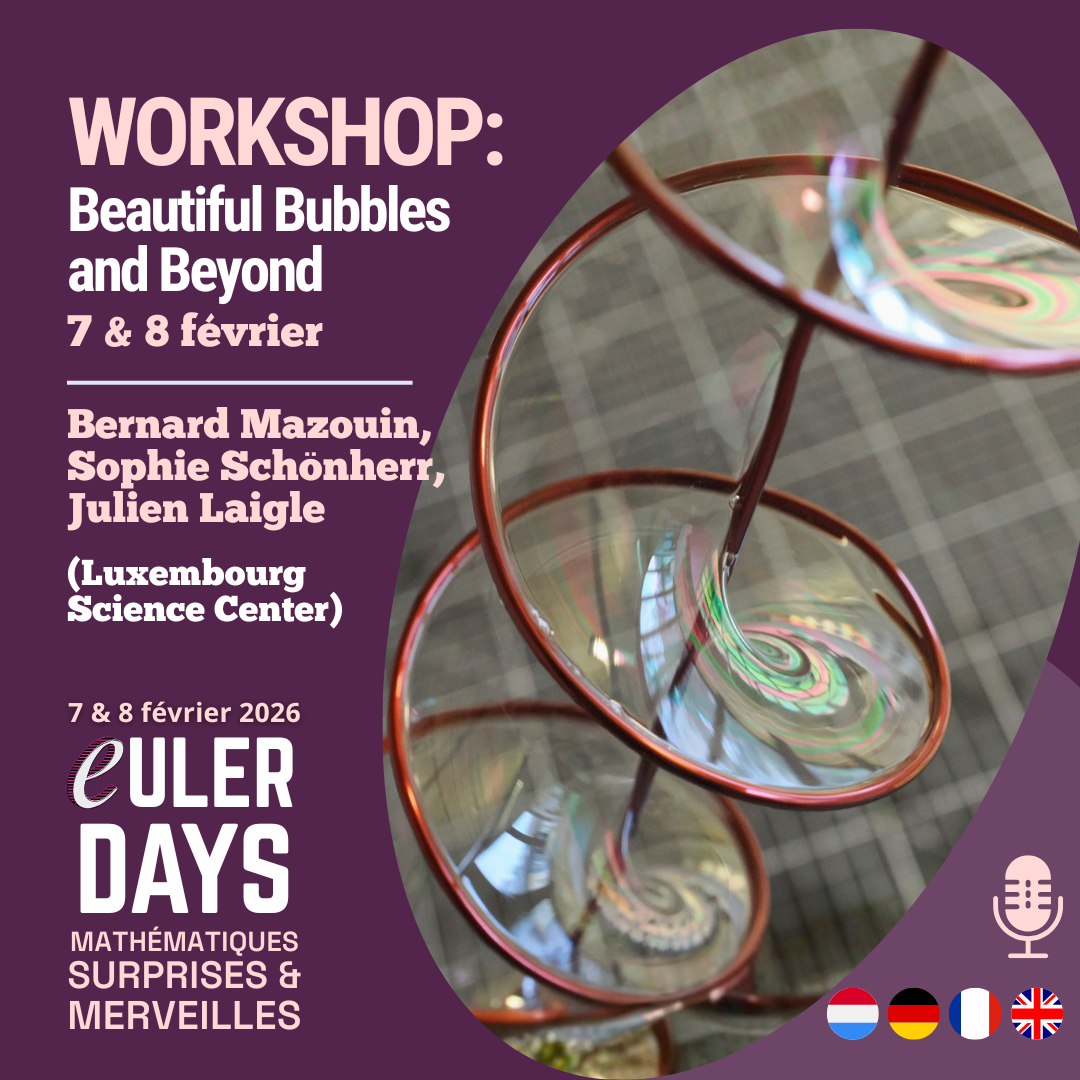 - WORKSHOP: Beautiful Bubbles and Beyond (Bernard Mazouin, Sophie Schönherr, Julien Laigle - Luxembourg Science Center) - FR, LU, DE & EN